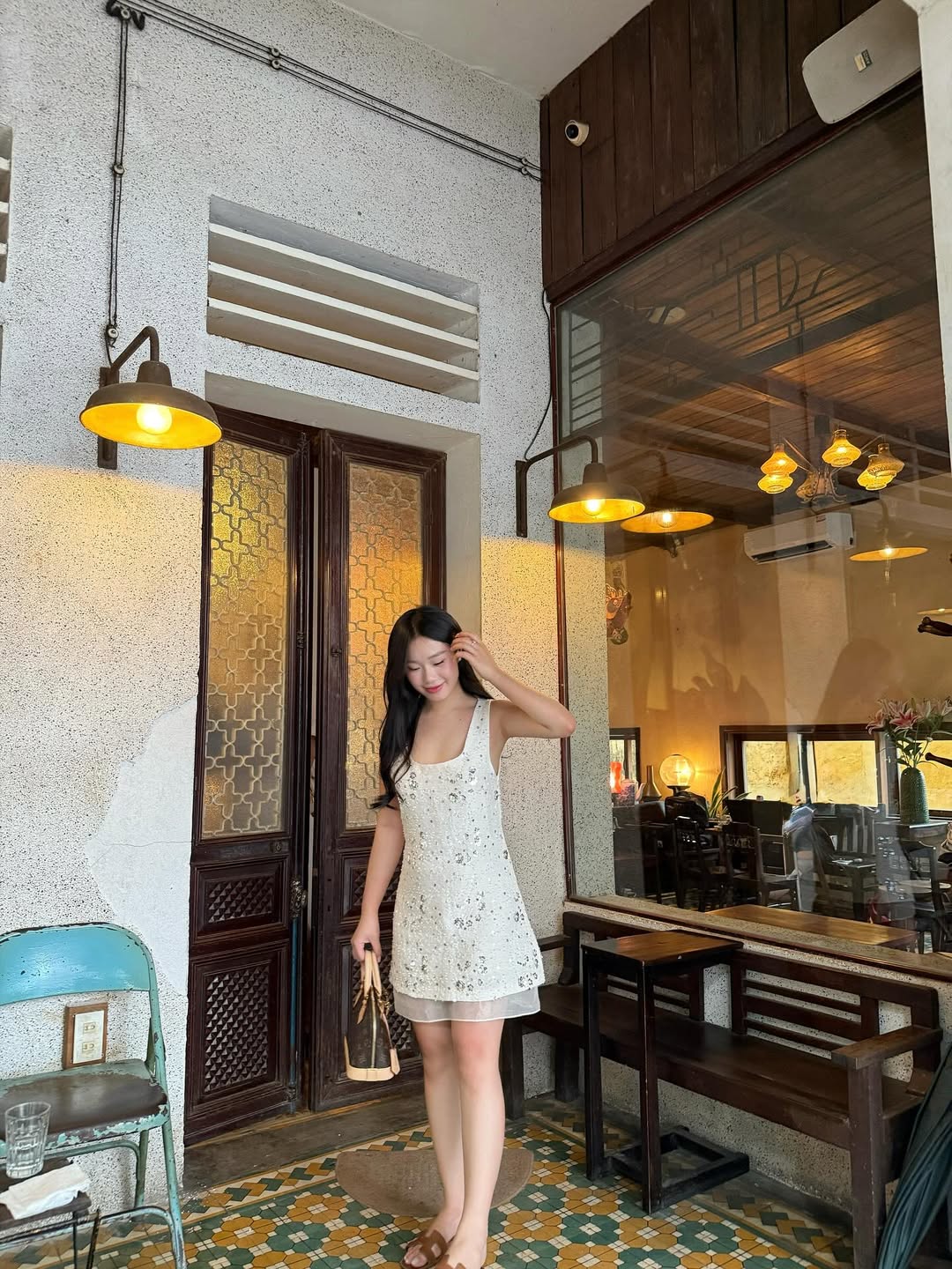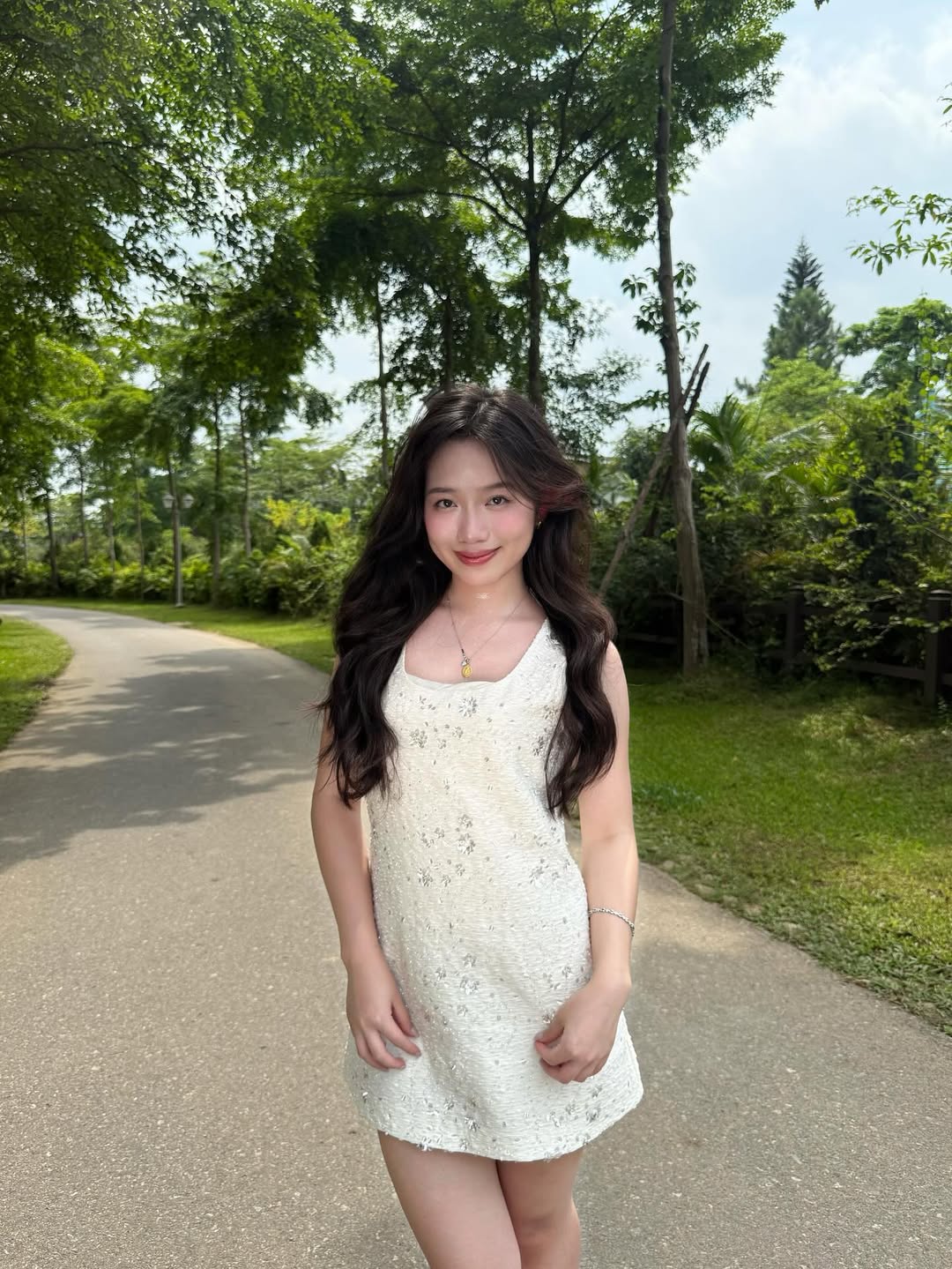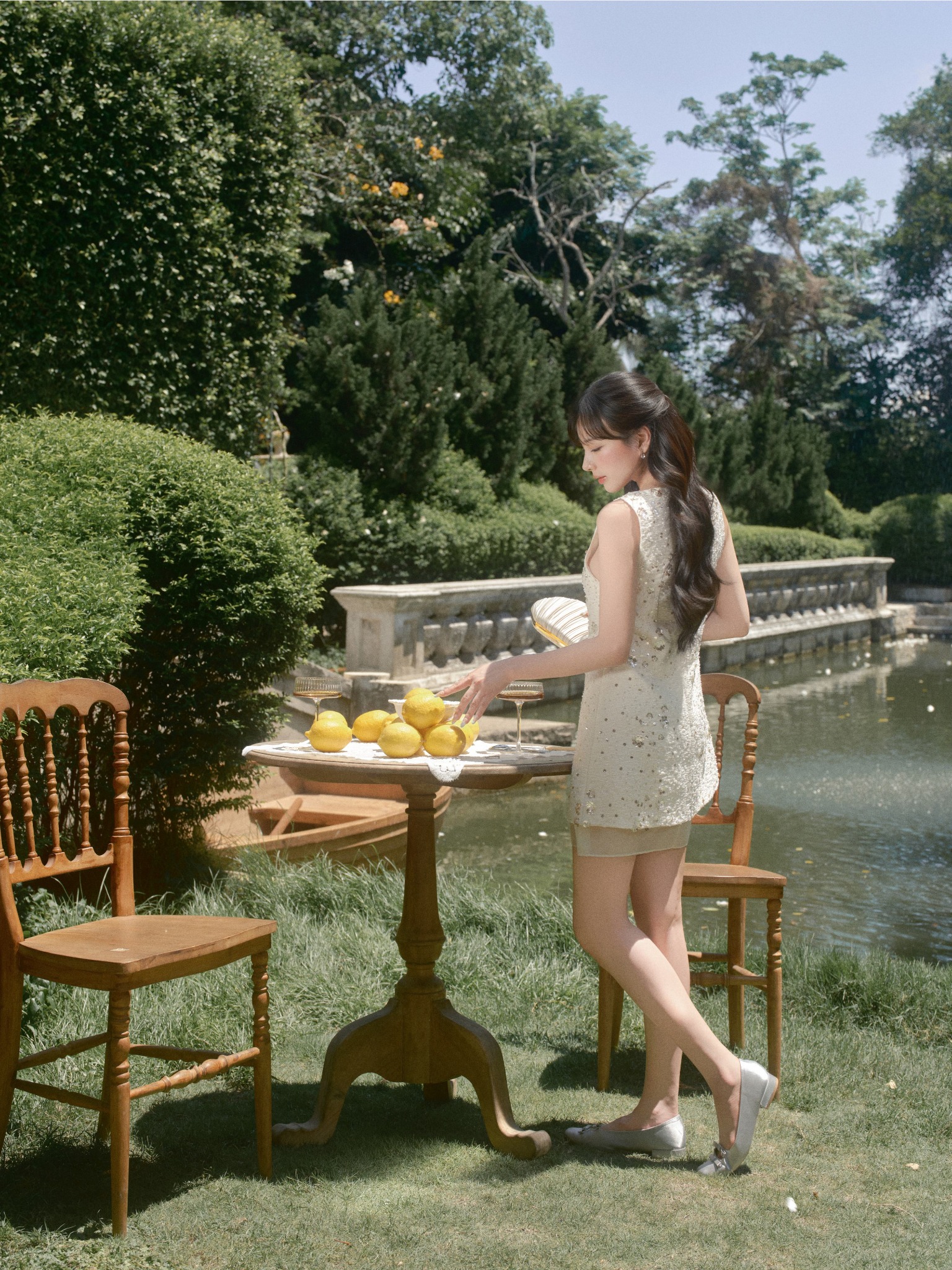 Thiết kế mang vẻ đẹp cổ điển, sang trọng trong BST thuộc về Ceri Dress. Với chất liệu Tweed đính hoa, tạo độ mềm mại, uyển chuyển khi di chuyển. Phần váy được thiết kế dáng suông, khéo léo che đi khuyết điểm của người mặc. Phần tơ được đính kết dưới thân váy, điểm cùng hoa Sequin đính trên nền vải.