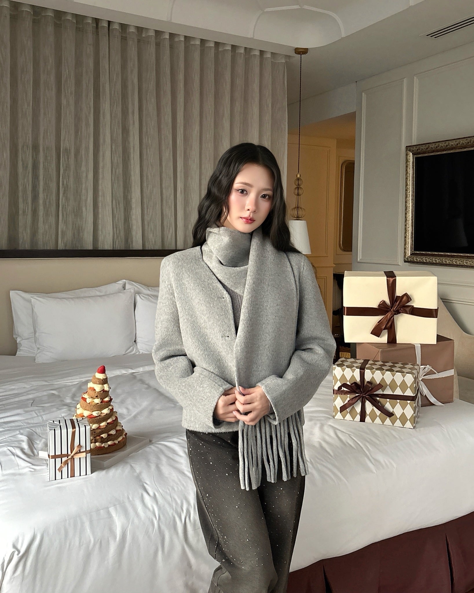 - Chất liệu dạ cao cấp, mềm mại, ít xù, không dặm ngứa khi mặc