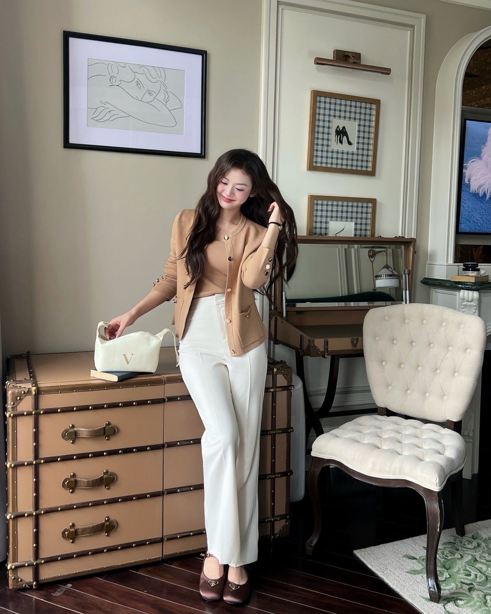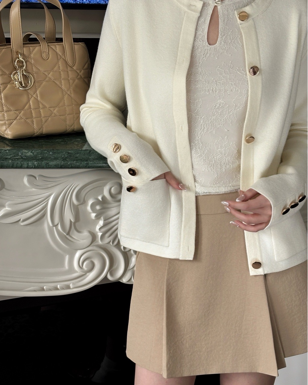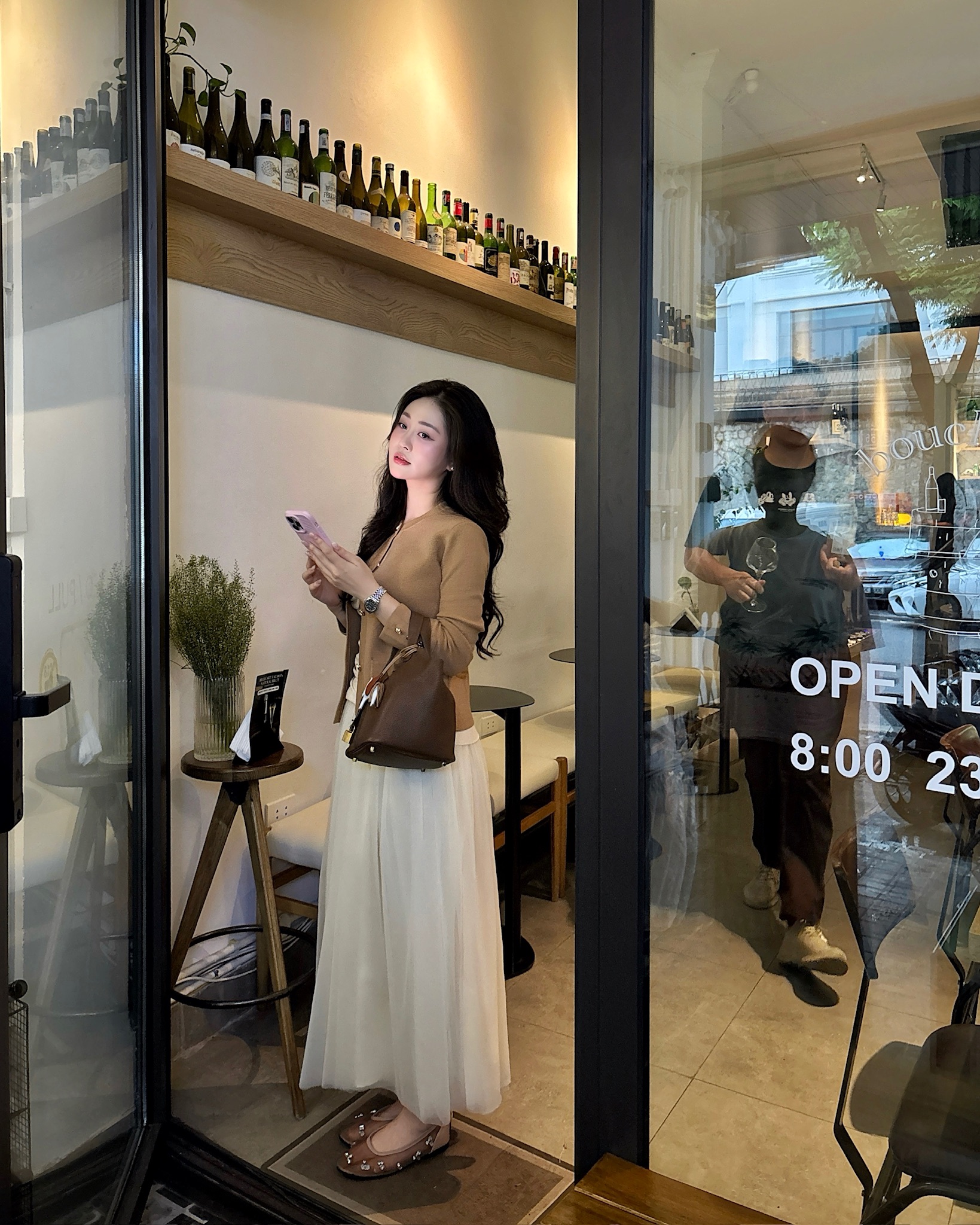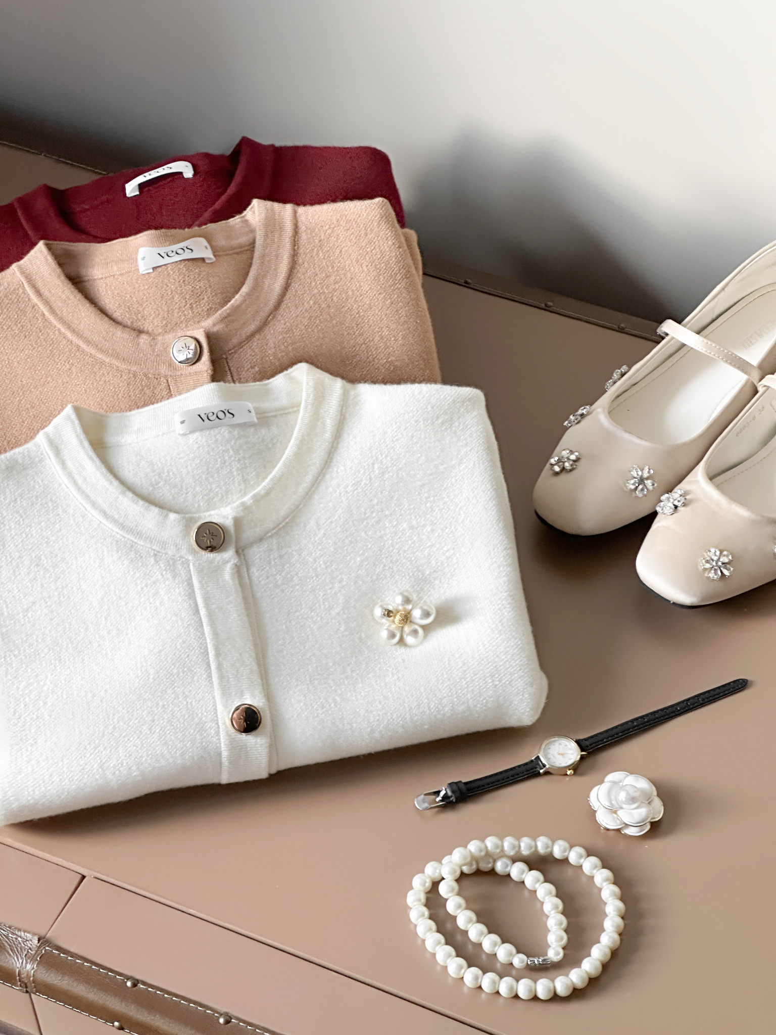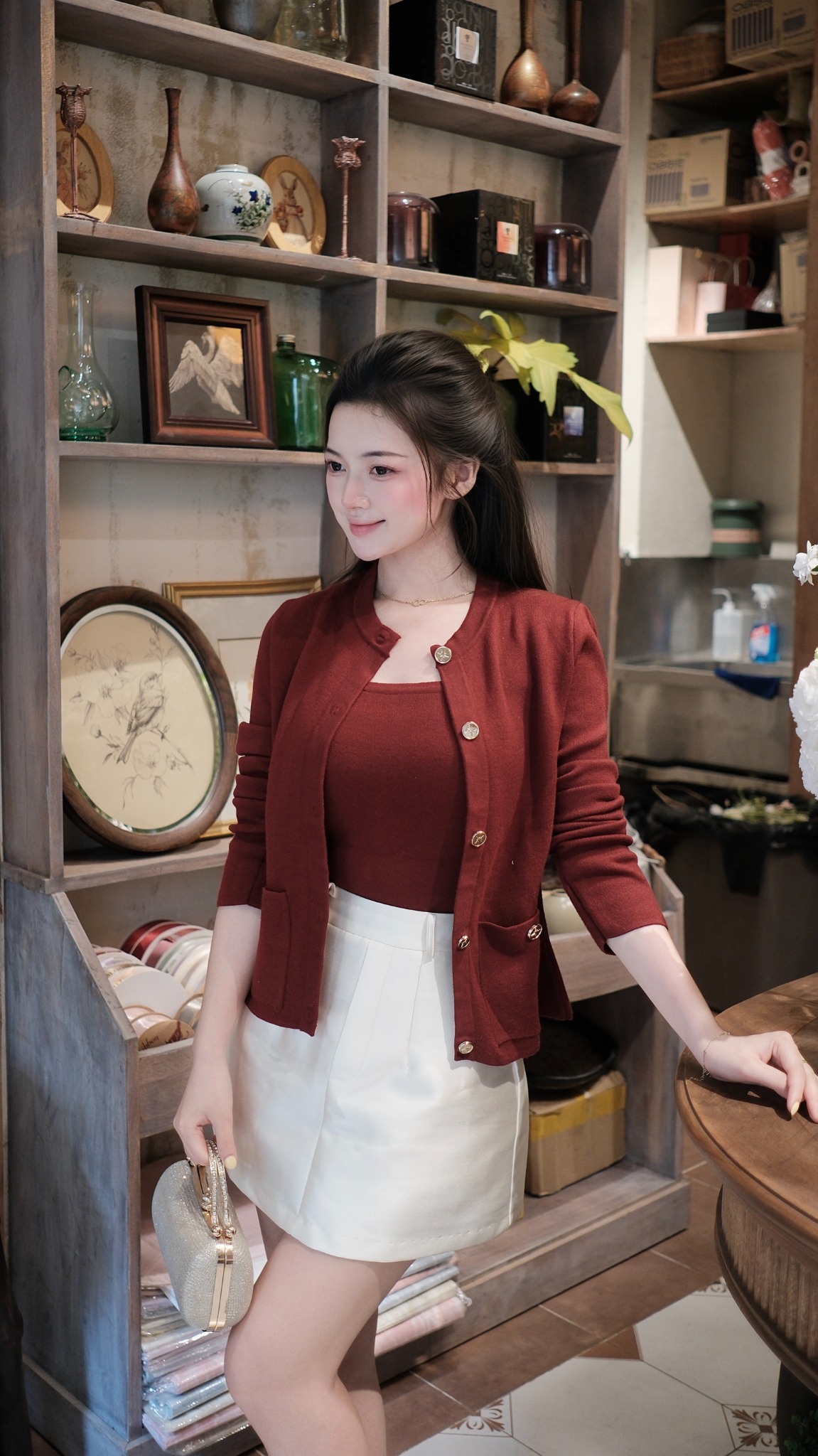 Cardigan mùa thu – khi sắc màu trắng, nâu và đỏ burgundy gặp nhau trong bảng màu của sự tinh tế. Sự chuyển mình của mùa được dệt trong từng sợi len mềm mại, đủ để khiến ngày se lạnh trở nên dịu dàng hơn.