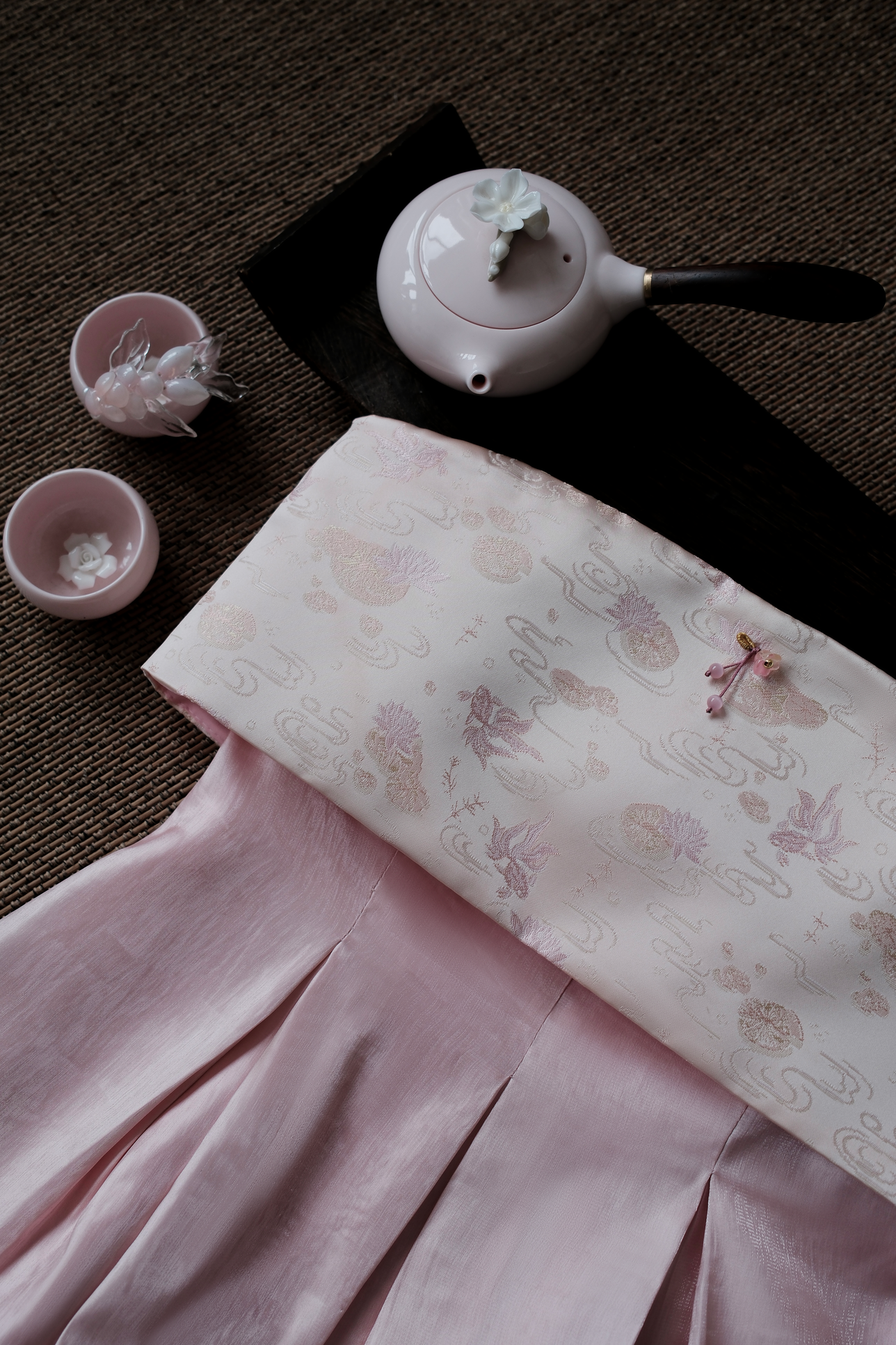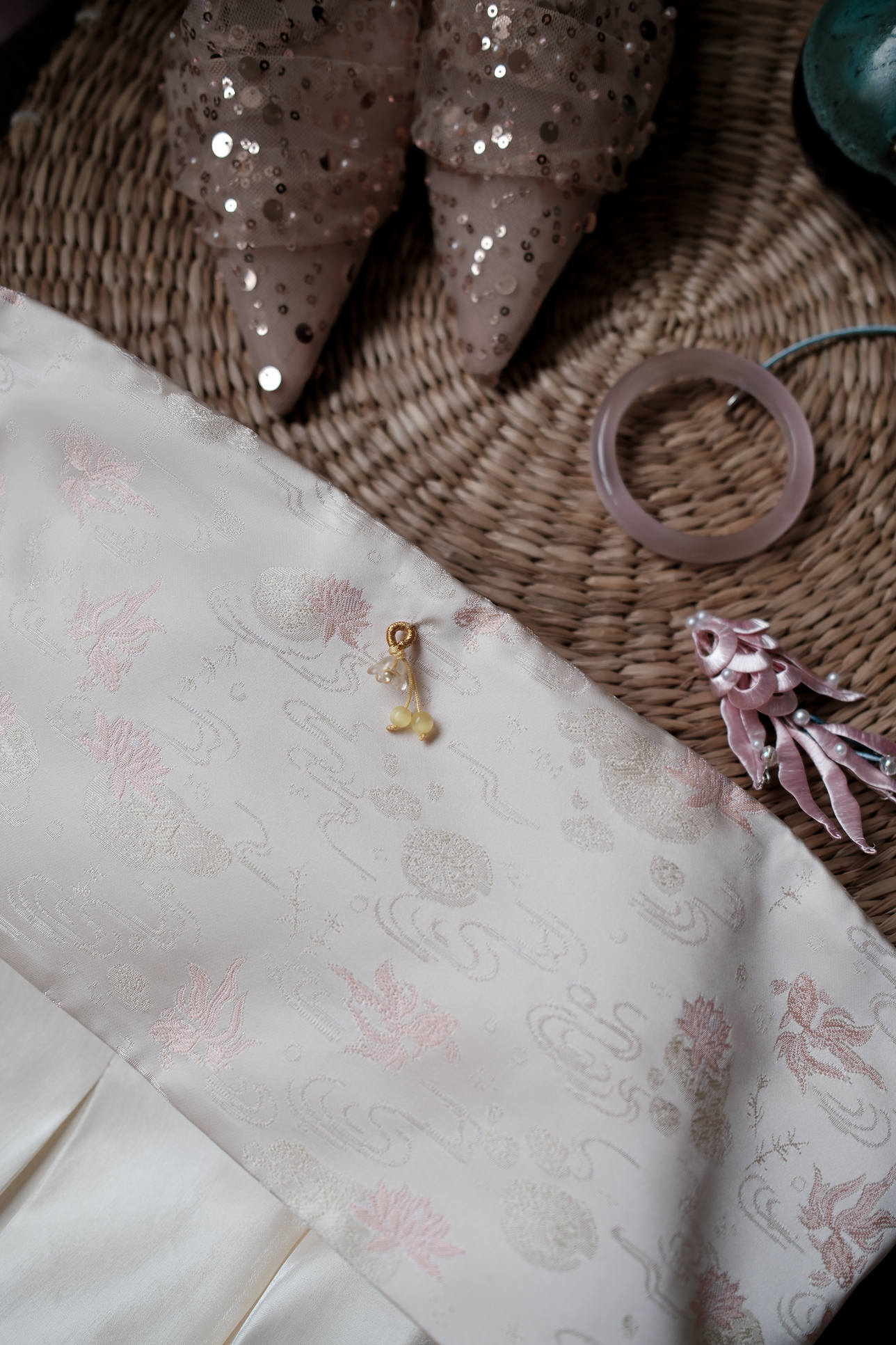 - Chất liệu: Tafta thêu phối tơ lụa óng