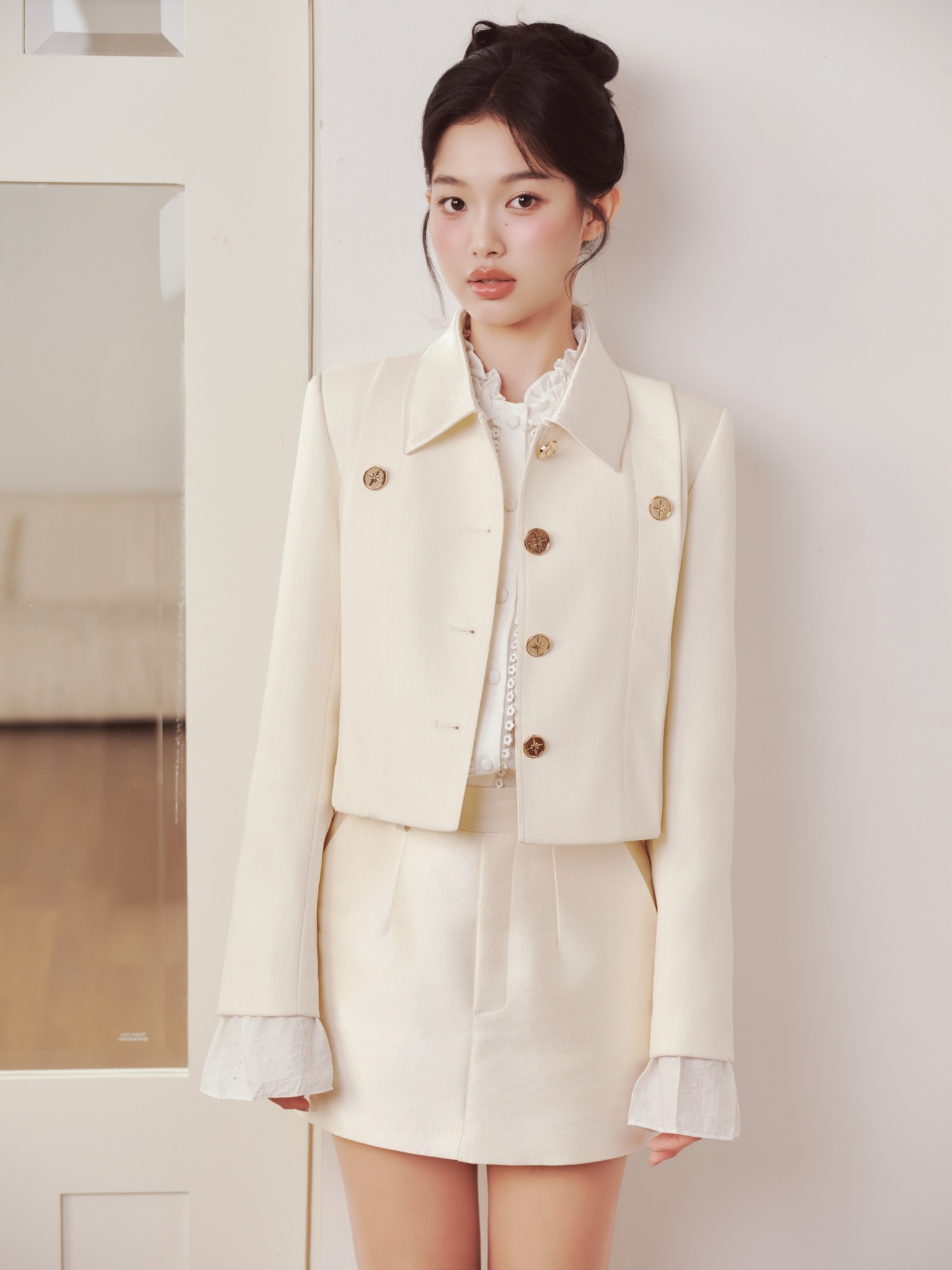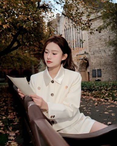 - Áo khoác thiết kế dáng ngắn dáng ngắn có đường xếp ly 2 bên ngực