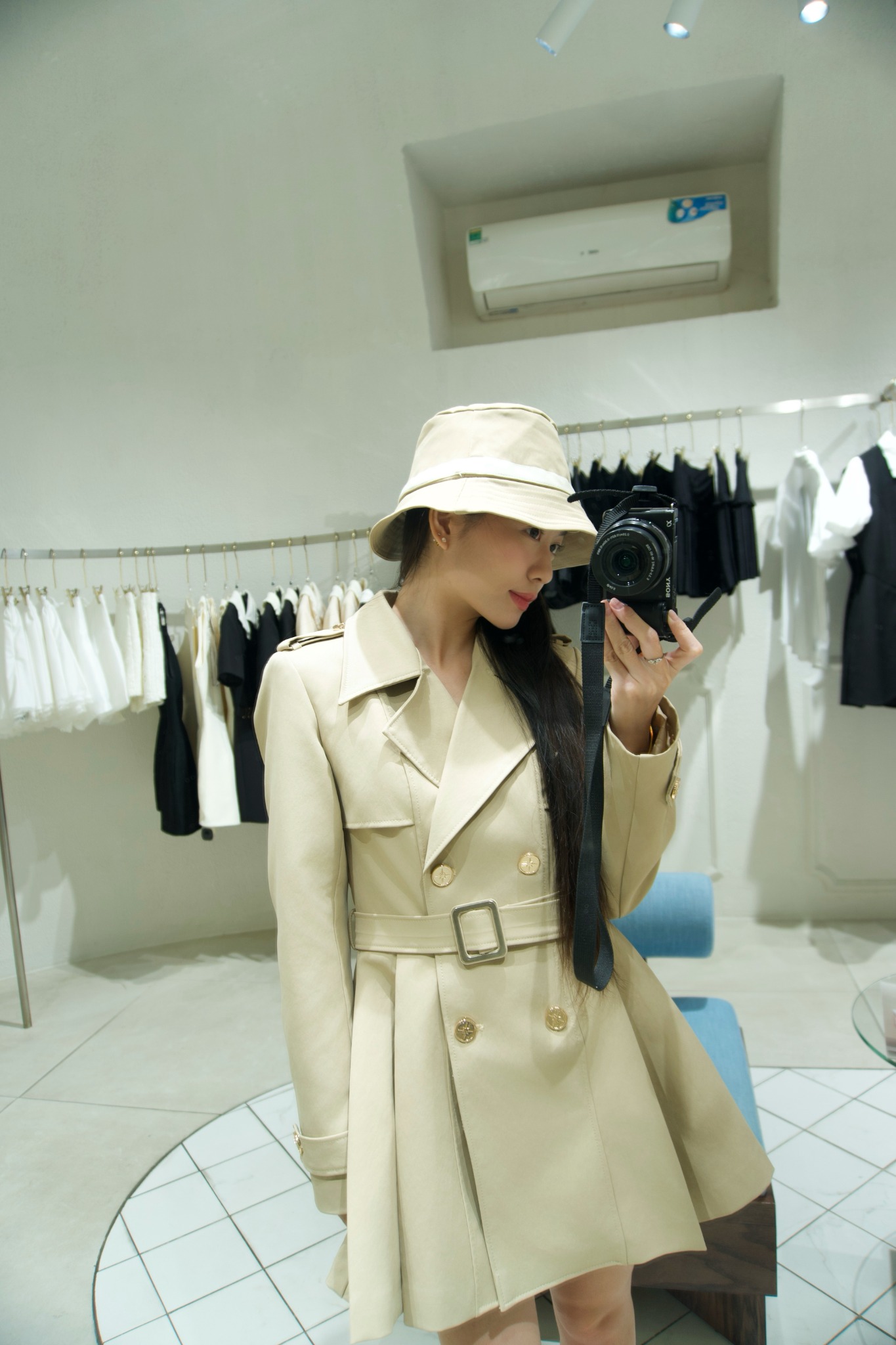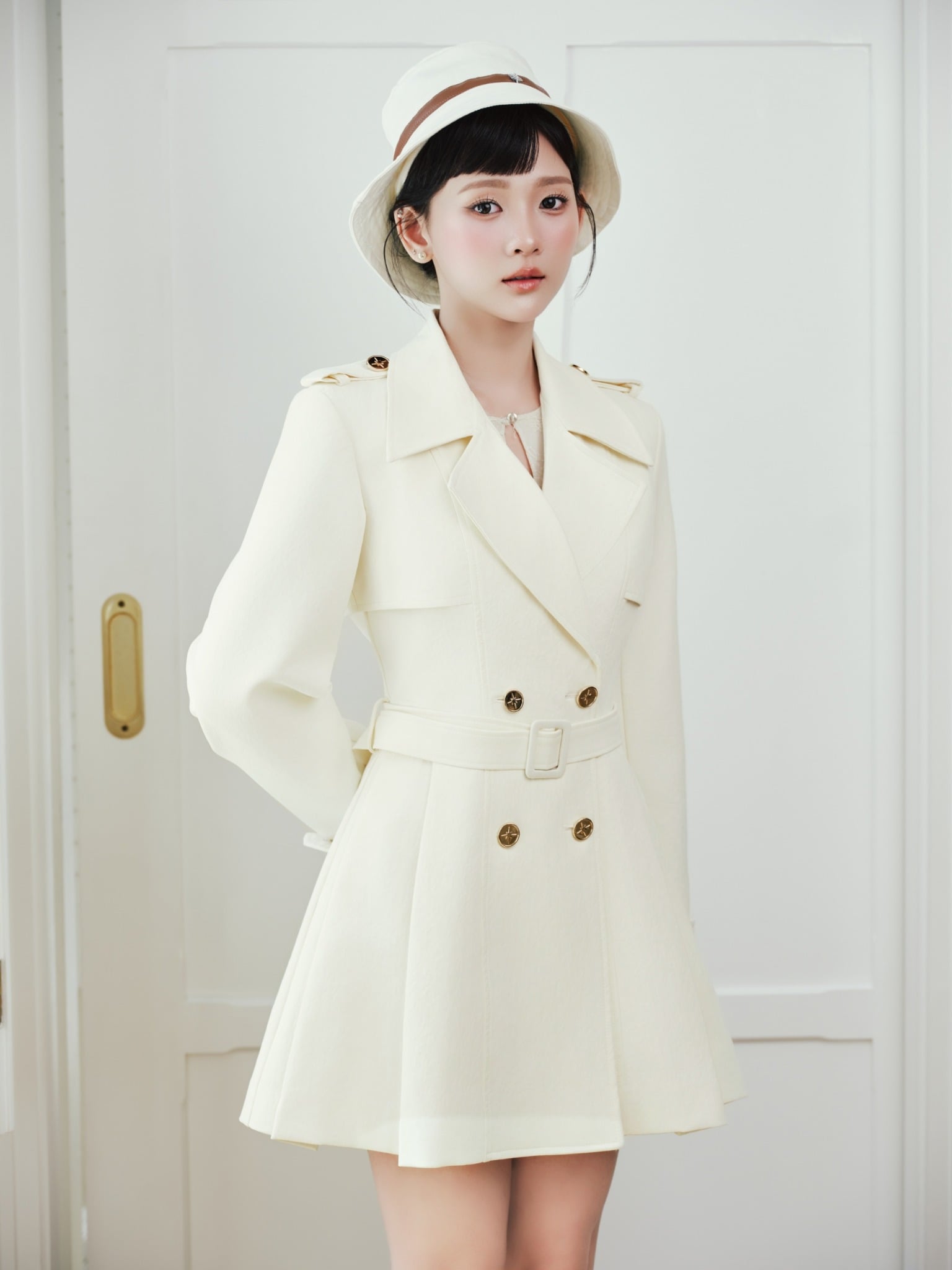 - Chi tiết khuy cài và dây đai eo nữ tính