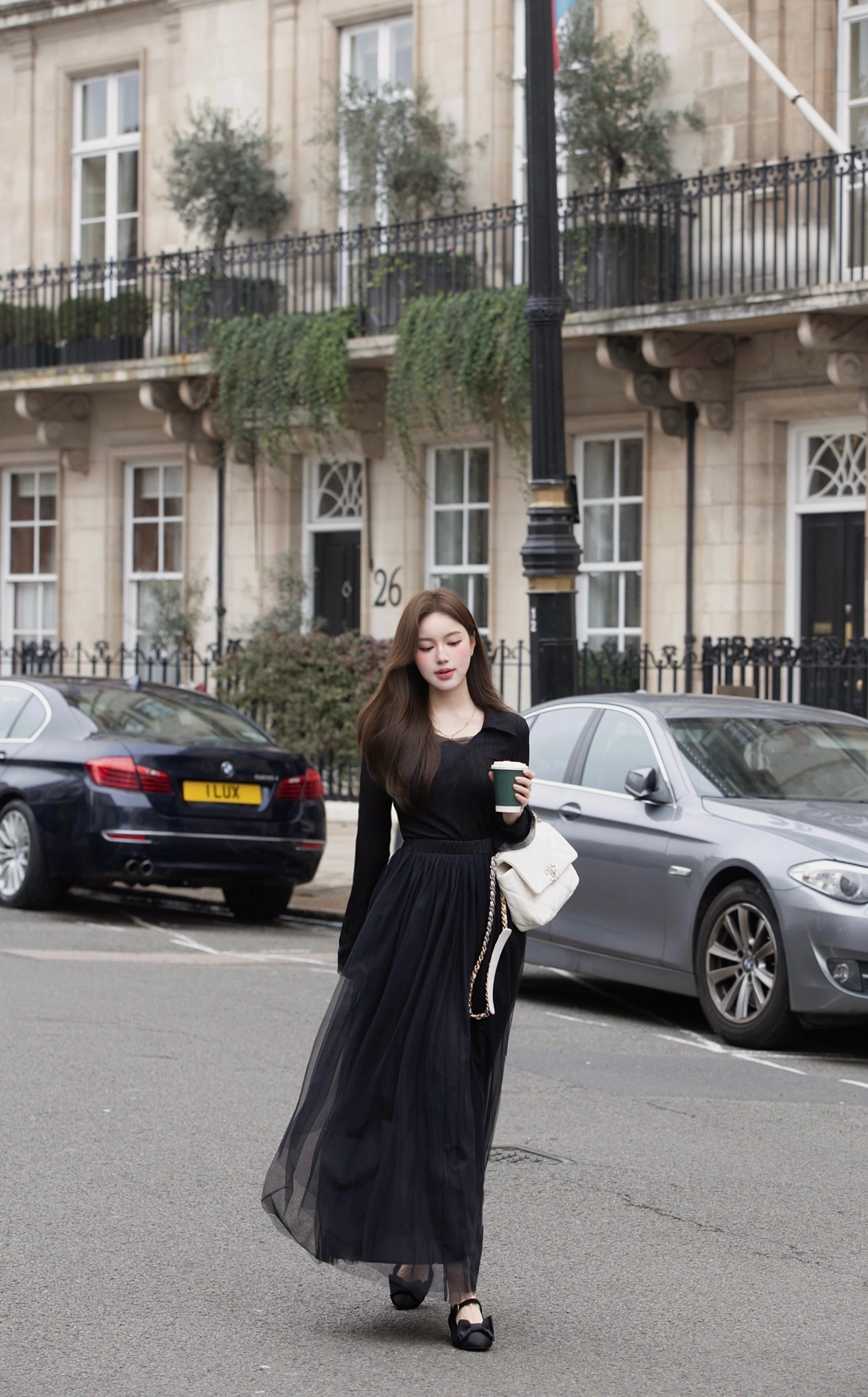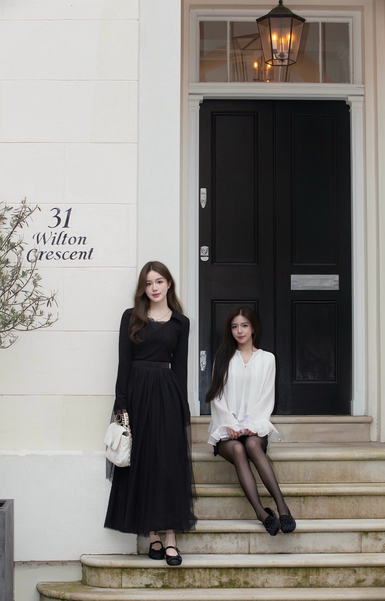 - Thiết kế nổi bật với phần phối voan mỏng phía ngực, tạo hiệu ứng layer nhẹ nhàng và chiều sâu thị giác. Lớp voan trong suốt được xử lý khéo léo, vừa tăng nét mềm mại vừa giữ được sự tinh tế.