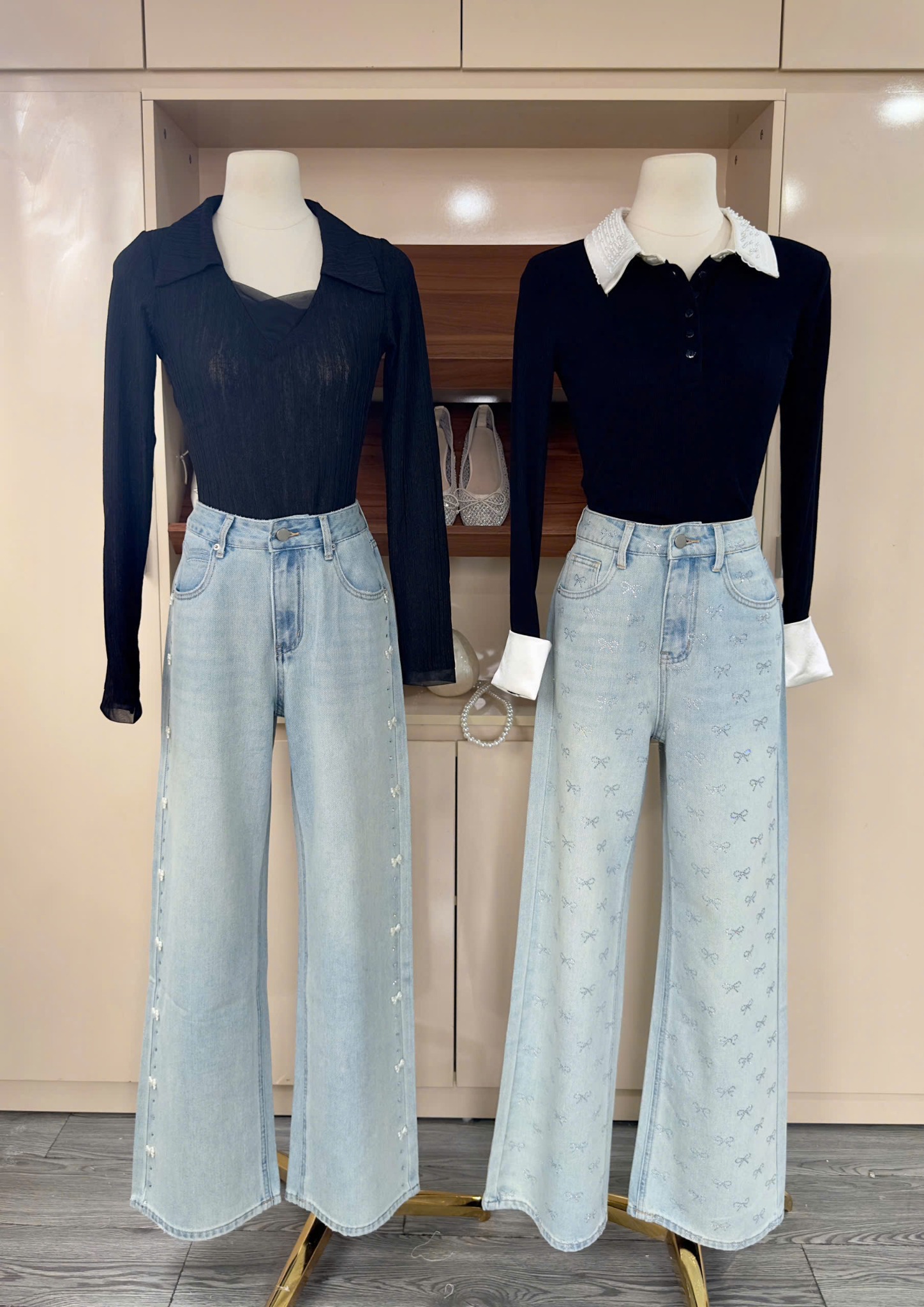 Jenni Top - Áo thun gân dài tay cổ bẻ