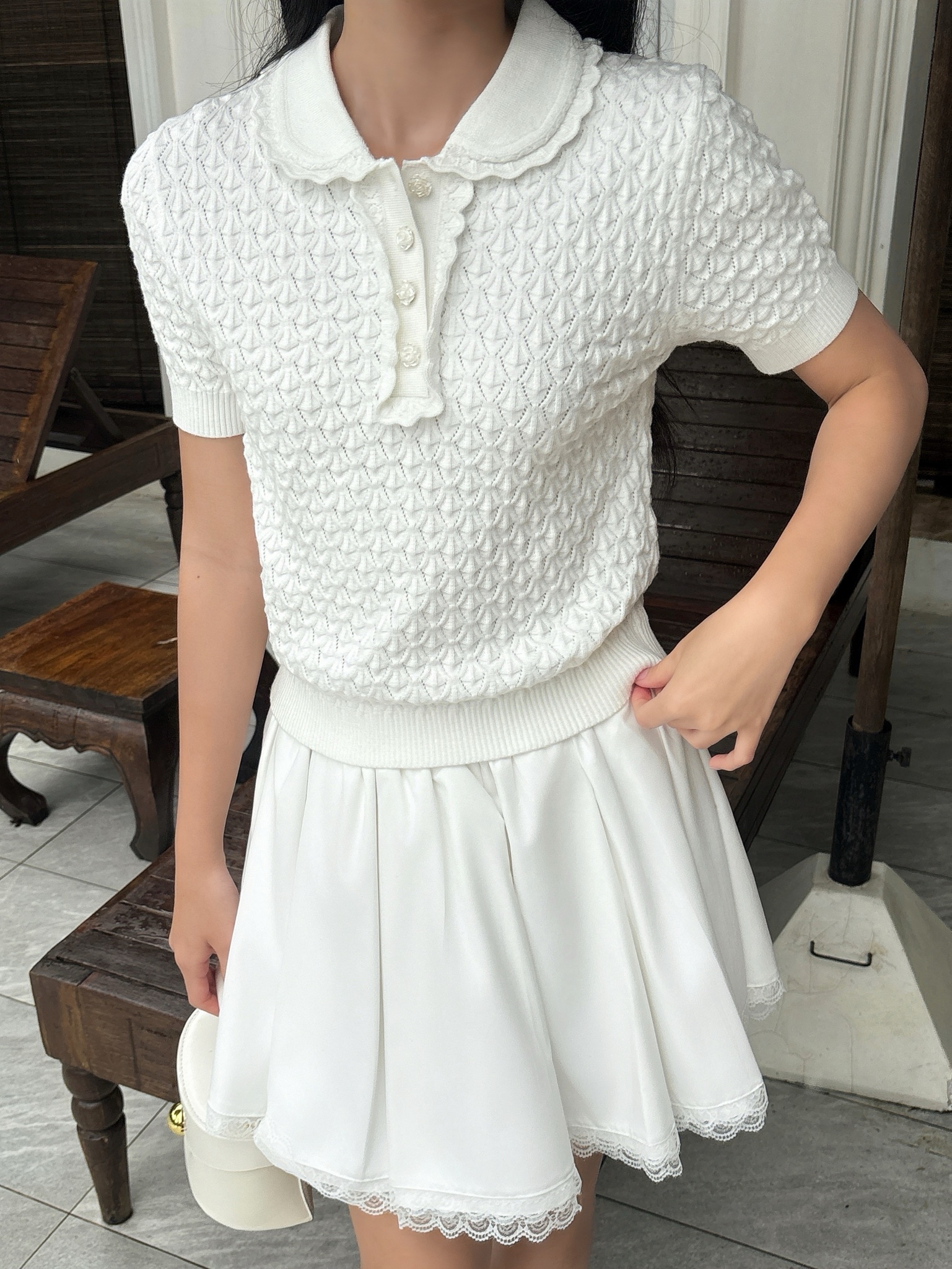 - Thiết kế cổ phối ren nữ tính