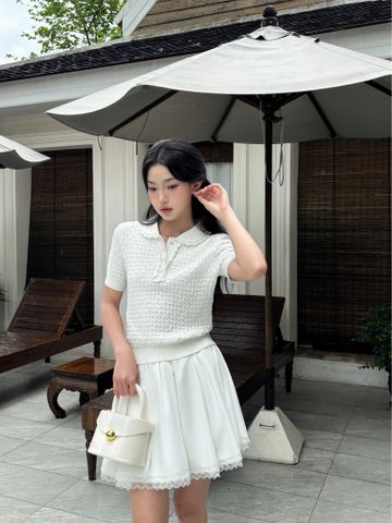 Thiết kế Pomi Top với dáng áo Polo trẻ trung, phần thiết kế ren trắng ở viền cổ áo làm nổi bật được vẻ hiện đại, thanh lịch trên tổng thể. Chất liệu len sợi Acrylic Cotton cao cấp, ít xù mà vô cùng mềm mại, hoàn toàn phù hợp với thời tiết này.
