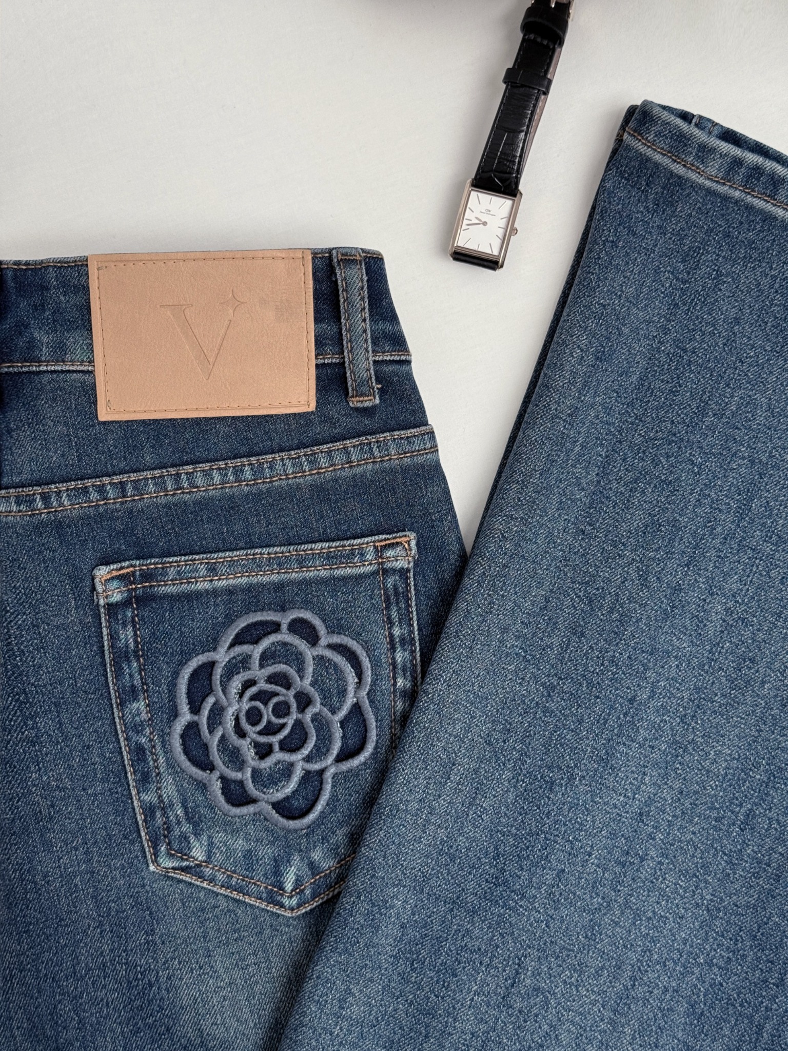 Thiết kế Jeans mới nhất nằm trong Collection New Jeans thuộc về thiết kế Rosy Jeans. Với form dáng ống loe cùng màu xanh trendy, đây là một item hoàn hảo cho mọi cô gái có thể mix & match với mọi thiết kế khác nhau. Dáng quần Jeans ôm, hoạ tiết hoa hồng được thêu thủ công trên viền quần, tạo cảm giác thon thả, mềm mại. Khi phối với thiết kế áo Polo Pomi, tôn lên nét trẻ trung, ngọt ngào cho mọi cô gái.