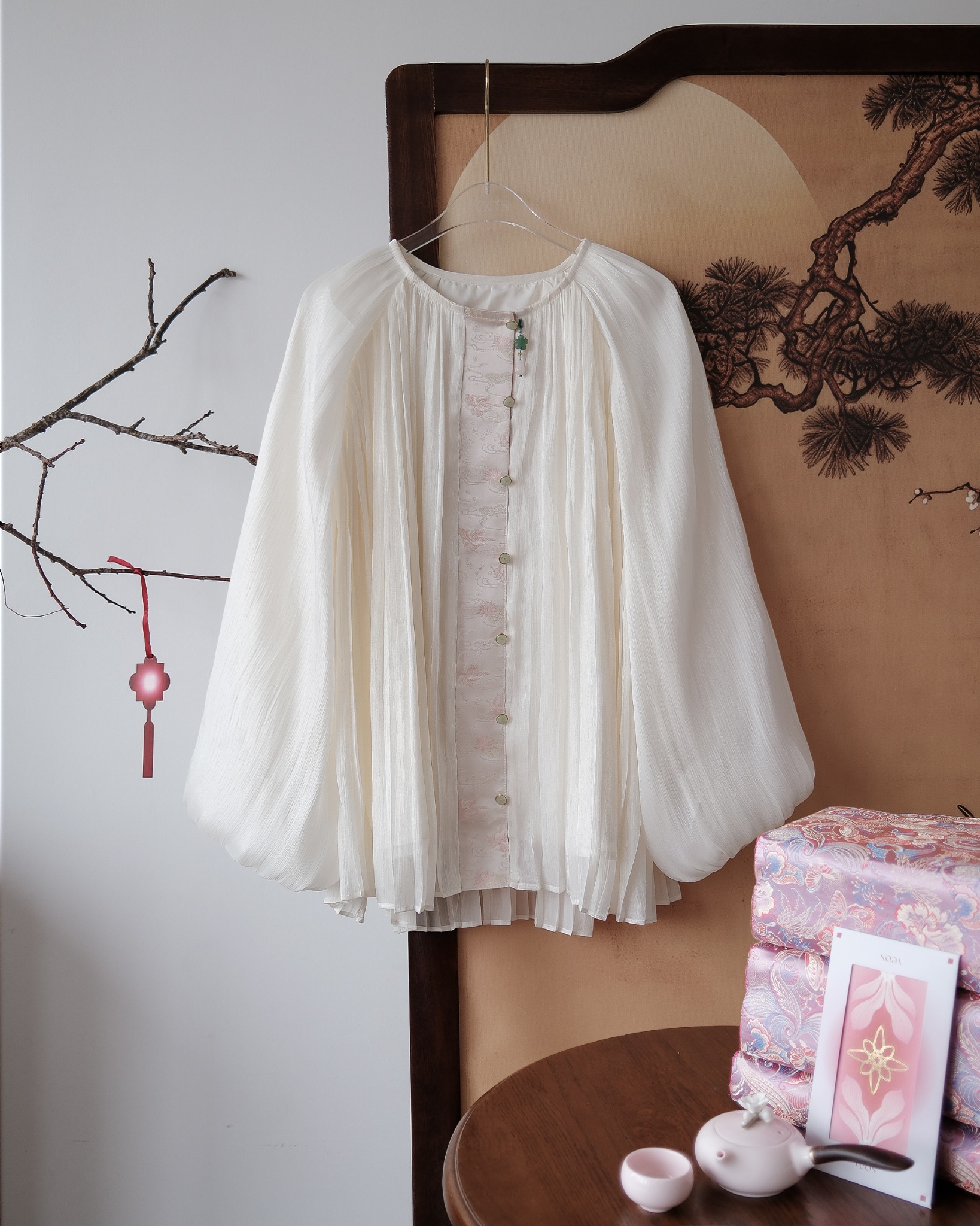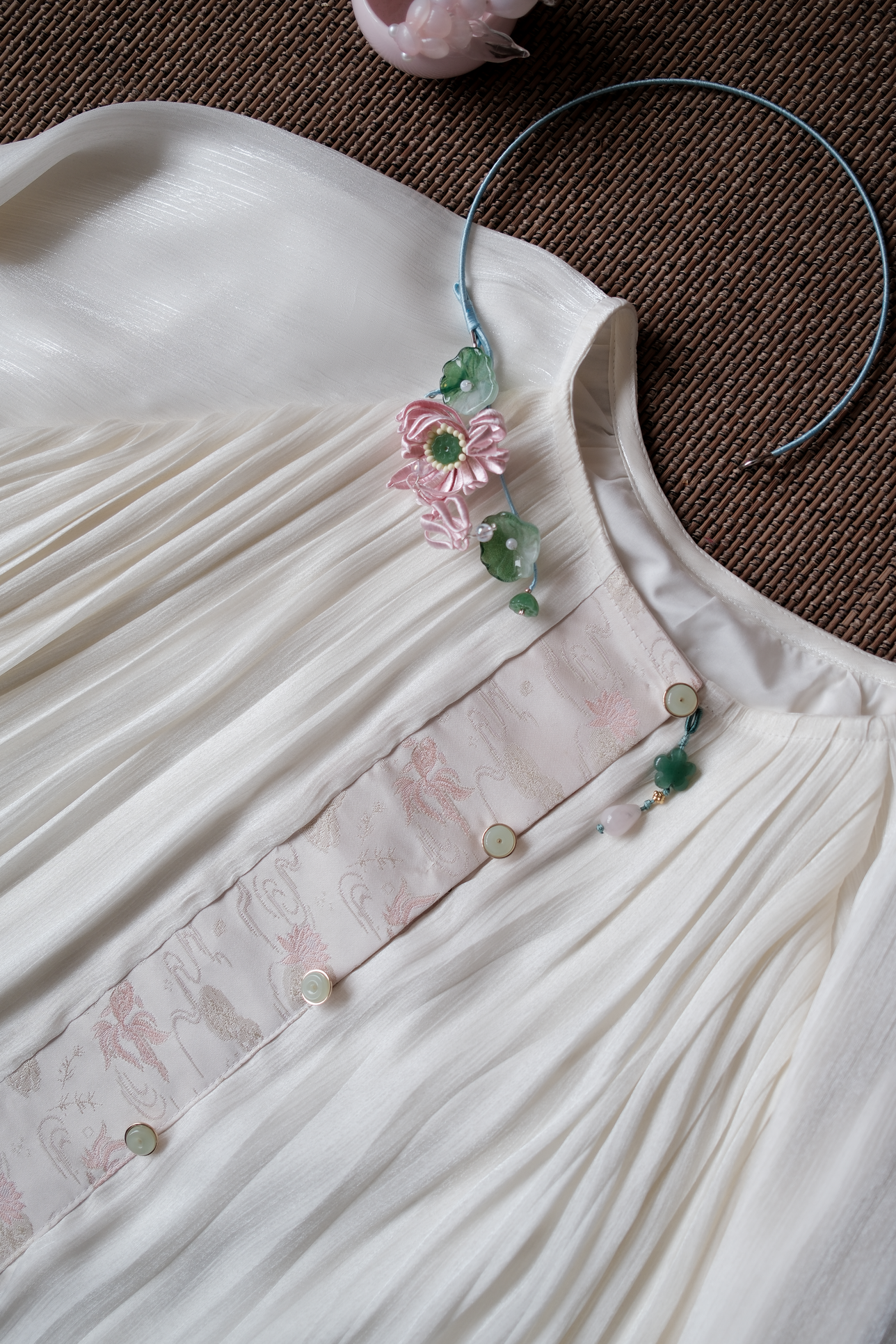 Tịnh Yên - Áo tơ xếp ly phối gấm tafta thêu