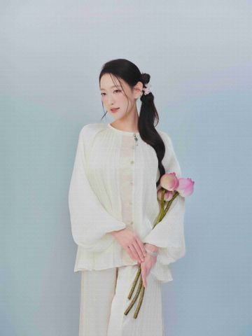 - Thiết kế tay áo bồng rộng, tăng phần nữ tính