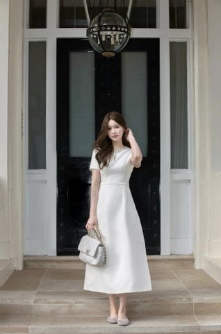 - Thiết kế váy midi trắng được may trên nền chất liệu tuytsi, bề mặt mịn, giữ dáng tốt nhưng vẫn tạo cảm giác mềm mại khi mặc.